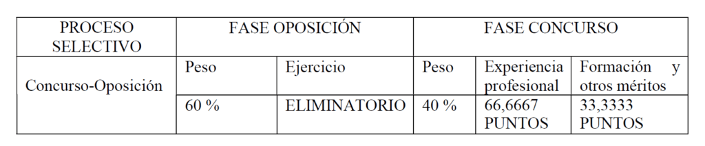Todos los procesos convocados son por la vía de concurso-oposición, en un peso de la fase de oposición del 60% y de concurso en un 40%.