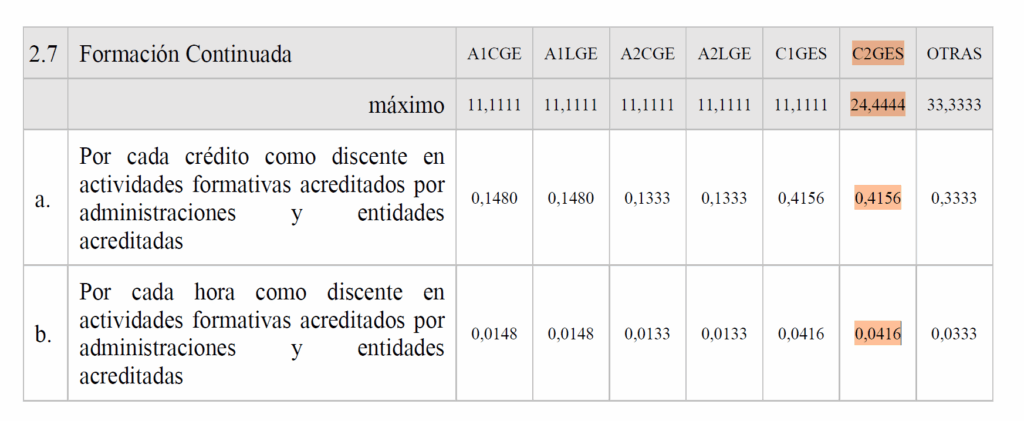 En total con estos 3 cursos consigues un máximo de 18,72 puntos sobre el máximo de 24,44.