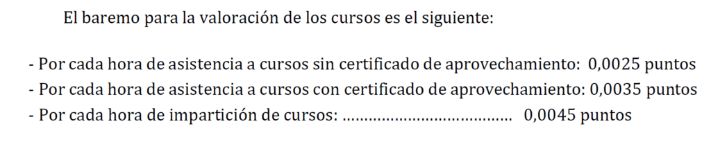 Ahora mismo no tenemos fecha de plazo de solicitudes ( pendiente del BOE, puede tardar en salir unos días, alguna semana o algún mes), las bases dicen que cuentan cursos relacionados con la materia impartidos por centros oficiales, como es una Universidad Privada. En Eficiencia y Oposición tenemos cursos homologados baremables para oposiciones homologados por la Universidad EUNEIZ Vitoria-Gasteiz. Si los haces y acabas antes de acabar el plazo de solicitudes puedes obtener algo más de puntuación en la fase de méritos