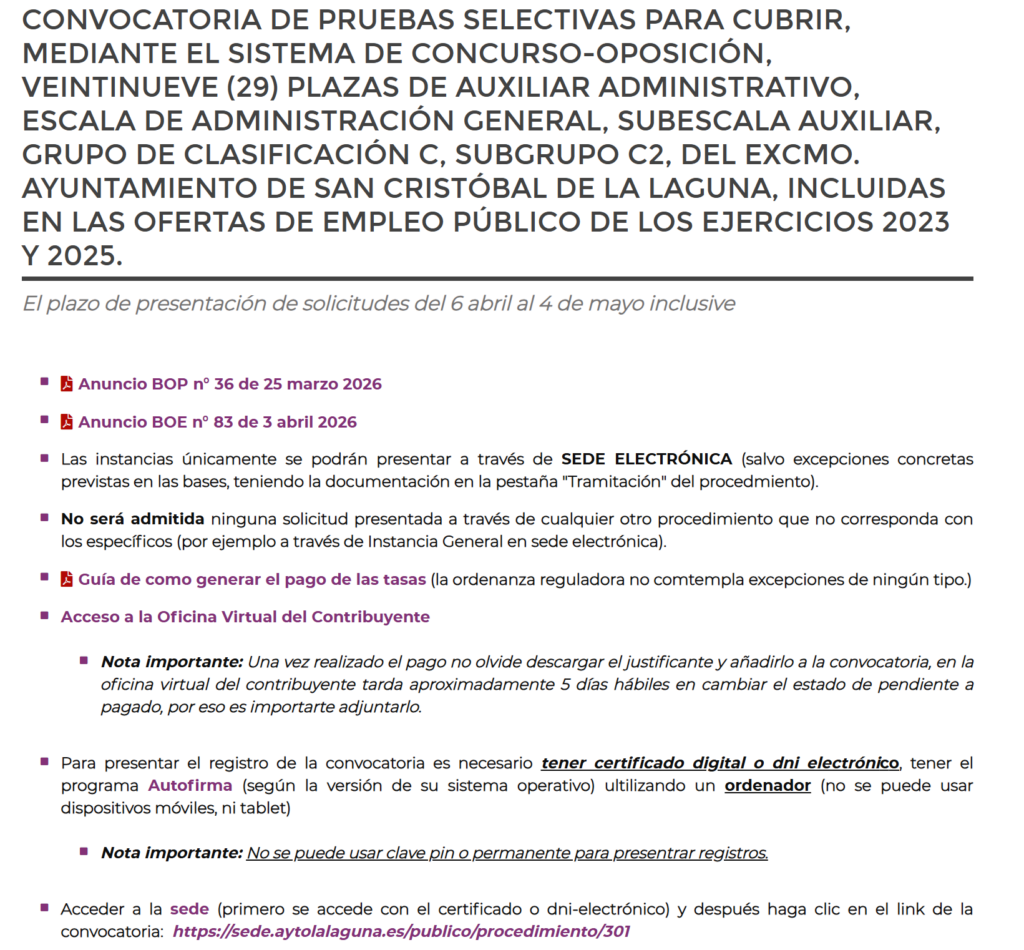 🏛️ El Ayuntamiento de La Laguna ha convocado29 plazas de Auxiliar Administrativo