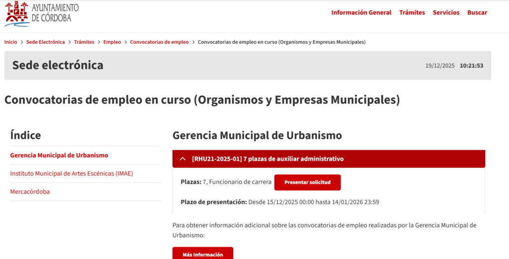 La Gerencia de Urbanismo de Córdoba ha convocado 7 plazas de auxiliar administrativo, agrupando plazas aprobadas en la Oferta de Empleo Público de 2021, 2022, 2023 y 2024.